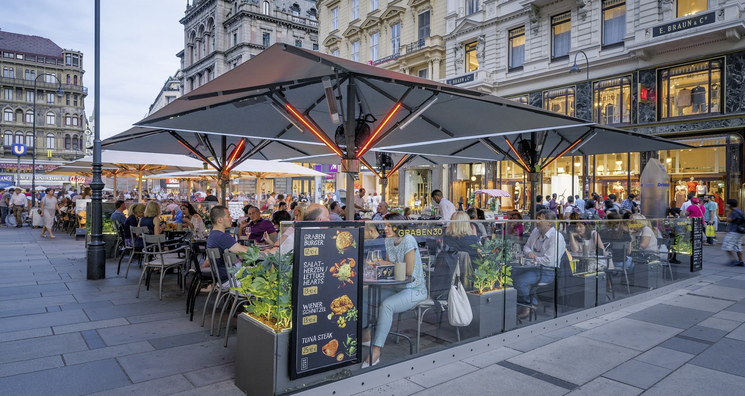 Die sichtbare Außenterrasse spielt eine entscheidende Rolle für den Charme eines Lokals. Ein Sonnenschirm weckt bei den Gästen bestimmte Erwartungen: Dort, wo ein Schirm aufgestellt ist, ist man willkommen.