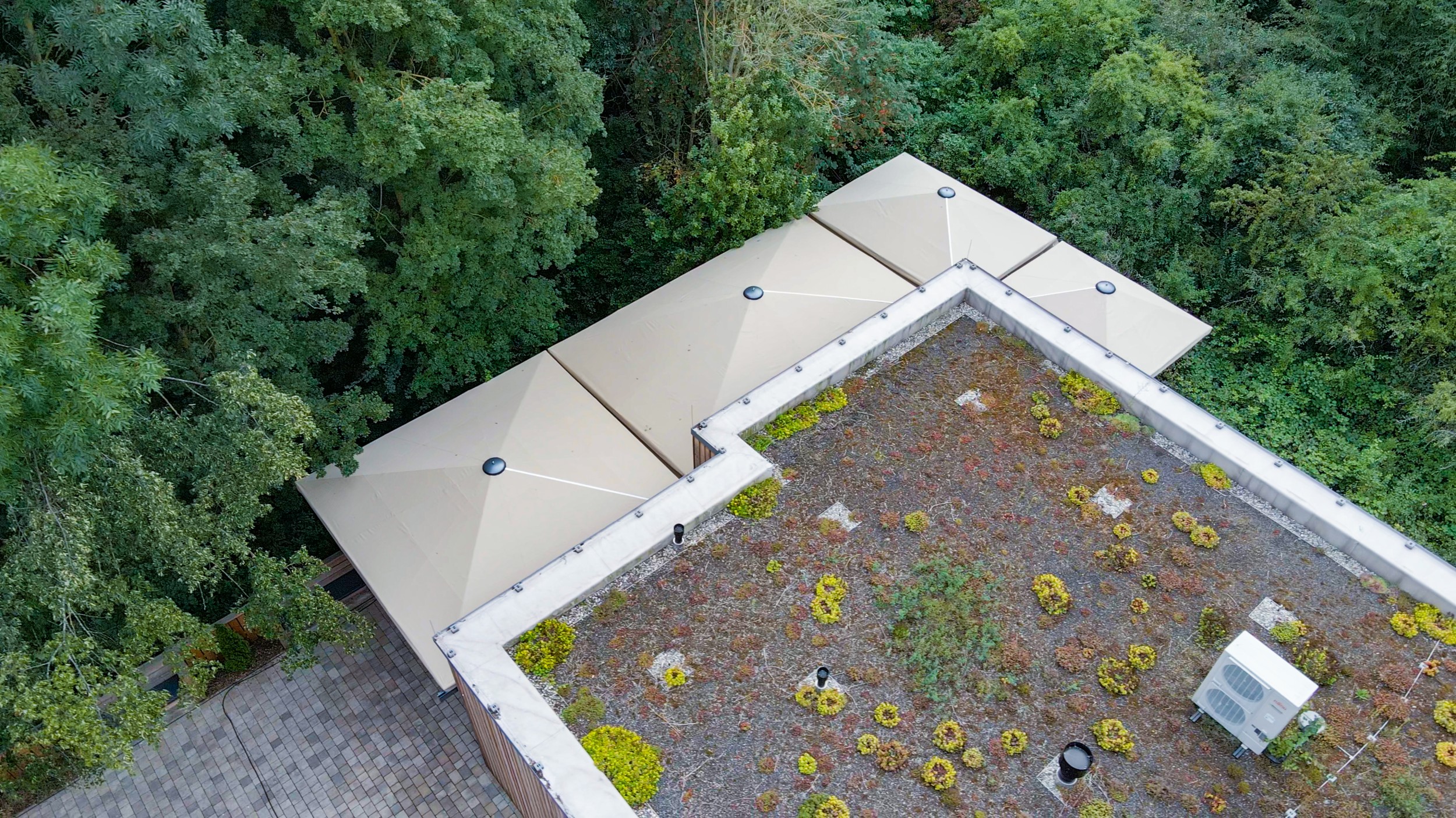 Die freie Formgebung erlaubt es, die überdachte Fläche perfekt an z.B. bestehende Gebäude anzupassen.