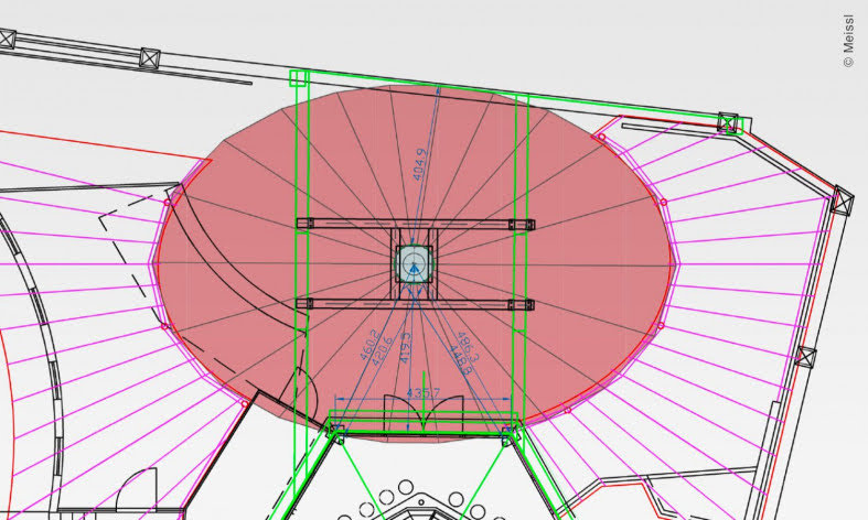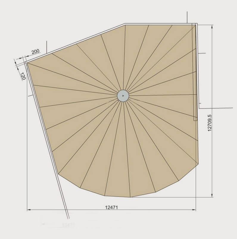 Wird der Steher an einer Wand platziert, kommen ein Halbschirm zum Einsatz. Wie bei einem Kuchen können wir beliebig große Stücke „ausschneiden, z.B. vierte, drittel, hälfte, dreiviertel, etc.