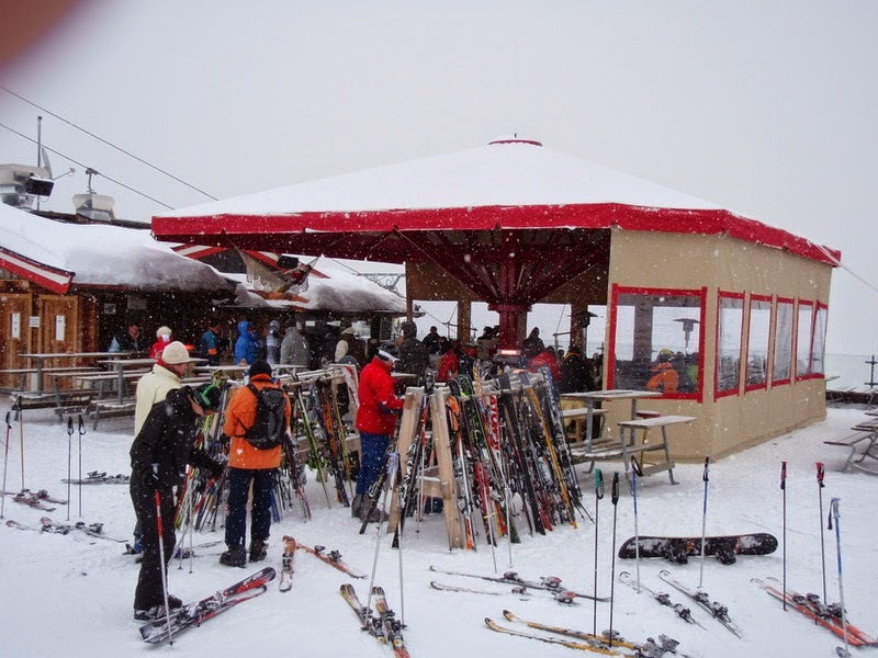 Aprèski am Fuße der weltbekannten Abfahrtspiste. Snowbar Saslong in St. Christina in Gröden
