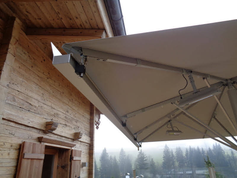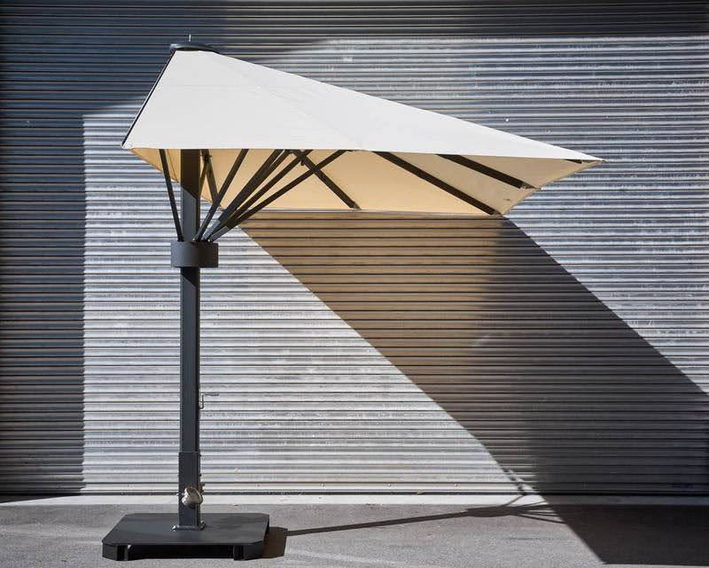 Nicht nur in der Grundfläche, auch in der Höhe lassen sich die Schirme frei konfigurieren und so z.B. an die Neigung eines Giebeldachs anpassen
