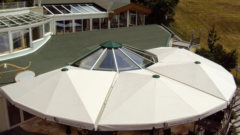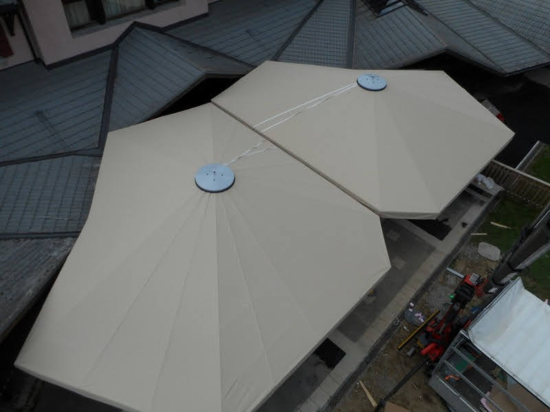 Die Schirme können zentimetergenau in jeder beliebigen Größe gefertigt werden. Von 3 bis 230 qm ist alles möglich.