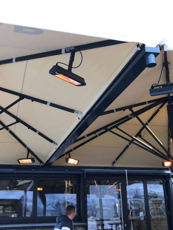 Macht die überdachte Fläche bis in die späten Abendstunden nutzbar. Helles, einladendes Ambiente an trüben Tagen. Einladende Signalwirkung